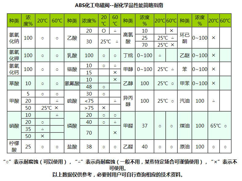 “禹成牌”化工電磁閥由于啟閉原理的獨特性和結構設計的科學性,產品的所有部件均可根據(jù)不同的化學介質選用不同的高分子材料制造,同時由于它的先導孔和卸壓孔是傳統(tǒng)閥的幾十倍大,復位彈簧設置在介質外,因此它具有不易堵塞、耐酸堿、抗腐蝕和使用壽命長等優(yōu)點,可適應于各種化學流體介質,是化工流體自動化生產設備的最佳配套產品。