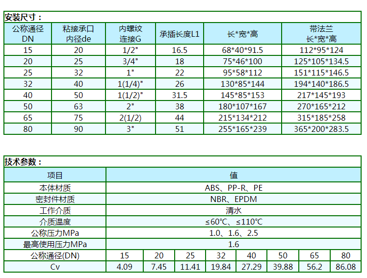 本產(chǎn)品民用系列選用國(guó)際通用型食品級(jí)工程塑料(ABS、PP-R、PE等)注造。工業(yè)用系列選用進(jìn)口阻燃型高強(qiáng)度工程塑料(PC等)注造。產(chǎn)品具有重量輕、耐腐蝕、不生銹、不結(jié)垢、導(dǎo)冷不結(jié)霜、導(dǎo)熱系數(shù)低,絕緣性能好,環(huán)保衛(wèi)生等優(yōu)點(diǎn)。啟閉原理上:采用浮動(dòng)閥芯,利用流體壓力差,誘導(dǎo)式啟閉的專利技術(shù)成果。因啟閉時(shí)無磨損(屬接觸型啟閉),而解決了傳統(tǒng)閥門因強(qiáng)制性啟閉而造成的啟閉部件和密封件磨損所引起的“跑、冒、滴、漏”的歷史性難題。它具有安裝使用方便,節(jié)能節(jié)水效果顯著(可節(jié)約傳統(tǒng)閥門的外泄內(nèi)漏所浪費(fèi)掉的水),使用壽命長(zhǎng)及物美價(jià)廉等特點(diǎn)。