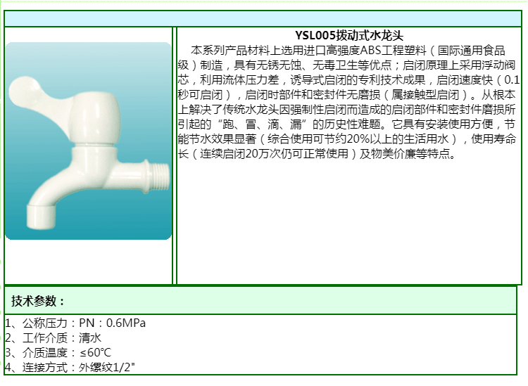 【產(chǎn)品型號(hào)】YSL005撥動(dòng)式水龍頭