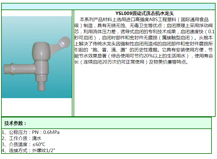 【產(chǎn)品型號(hào)】YSL009撥動(dòng)式洗衣機(jī)水龍頭